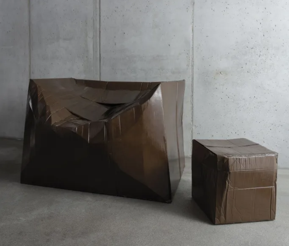 Desde 2020, o artista e designer ucraniano Illya Goldman Gubin, radicado em Berlim, tem reforçado caixas de papelão disformes usando resina e fibra de vidro e transformando-as em assentos, mesas e prateleiras incomuns. A série “Karton” em andamento começou após a pandemia de Covid-19, quando Gubin passou a experimentar criações que confundiam os limites entre arte e objetos funcionais.