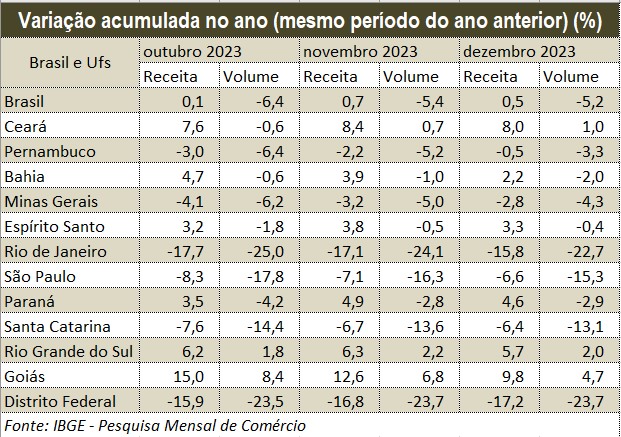 Abaixo você vê como foi o desempenho do varejo de móveis nos três últimos meses de 2023: