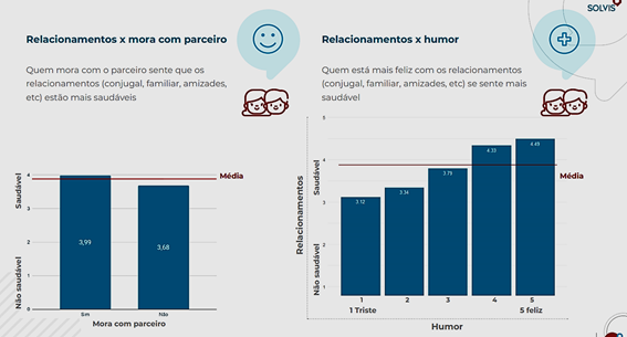 E, para concluir, a equipe da Solvis fez um pequeno resumo sobre o que as pessoas estão fazendo para manter o equilíbrio nesses relacionamentos. “Mais de 68% dos nossos respondentes consideram que seus relacionamentos estão mais saudáveis neste período, porém ainda existe um grande percentual que viu seus relacionamentos menos saudáveis. Atitudes como ter paciência e dialogar com familiares, têm ajudado a manter o equilíbrio nos relacionamentos”.