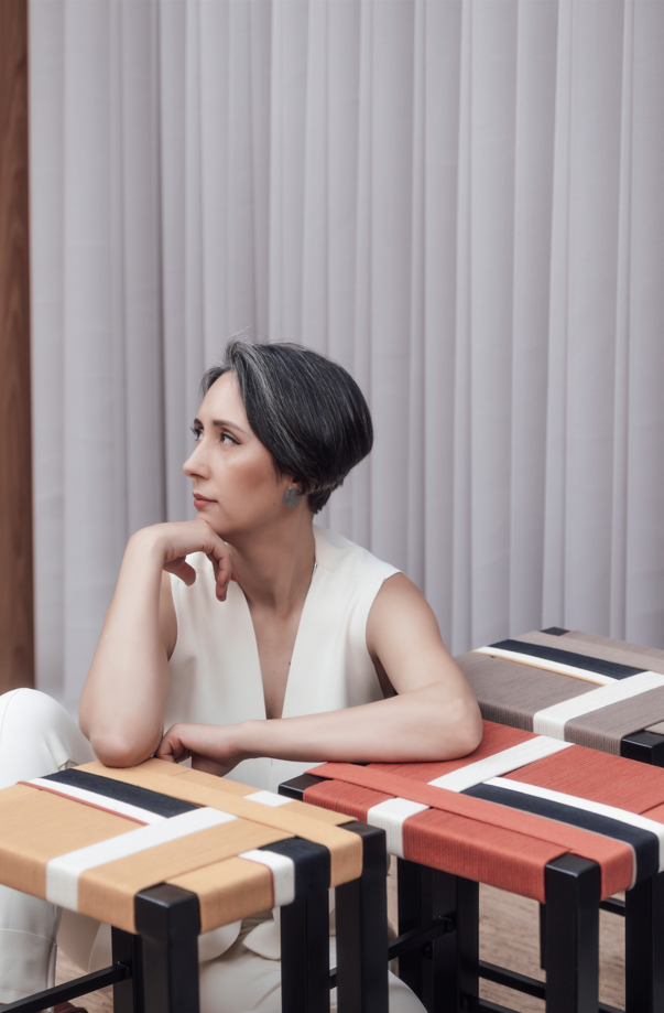 No espaço ÓCIO & OFÍCIO, de Luciana Garcia, um destaque que chama a atenção são as banquetas criadas por ela, inspiradas nos tamboretes de fazenda. Ao invés do couro, a autora trouxe a opção de assentos desenhados com tramas de algodão dispostas de forma geométricas em diálogo a arquitetura do espaço. “A trama remete ao fazer ancestral feminino de trançar fios em diversas superfícies enquanto o desenho do tamborete remete aos tempos interioranos do cotidiano nas fazendas’, destaca. Luciana. As peças estão sendo lançadas em parceria com o Estúdio Trama, que também está presente em outro ambiente da mostra, que é o Varanda Café, de Adriana Gouveia.