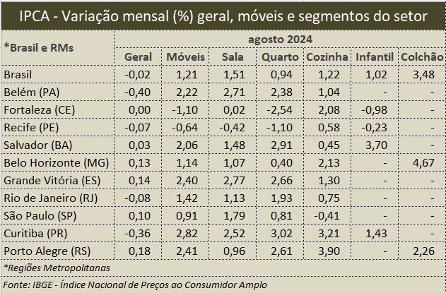 Em agosto o Índice de Preços ao Consumidor Amplo – IPCA recuou 0,02%, a primeira deflação no ano. Mas, contrariando as expectativas, o setor de móveis registrou elevação de 1,21%, com pico de 3,48% no segmento de colchão.