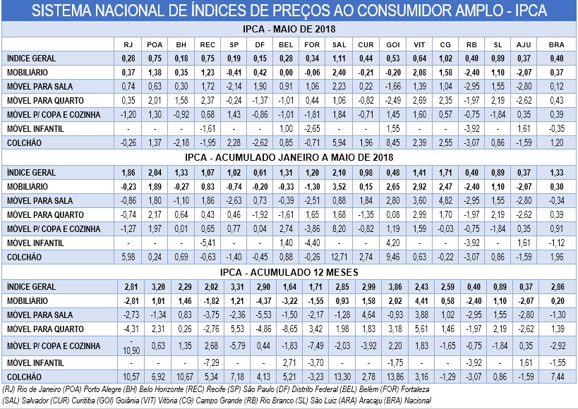 Veja abaixo o quadro complemento do IPCA geral e de mobiliário em maio: