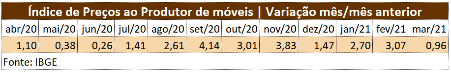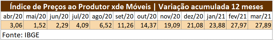 Preços de móveis na indústria sobem quase 30% em 12 meses