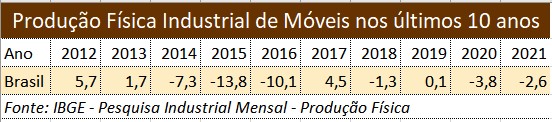 Produção de móveis em 2022 pode ser a pior dos últimos 10 anos