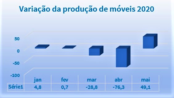 Veja abaixo a variação da produção de móveis nos primeiros cinco meses de 2020: