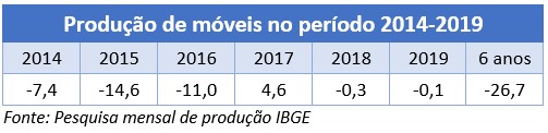 A produção de móveis entre 2014 e 2019 recuou quase 27%.