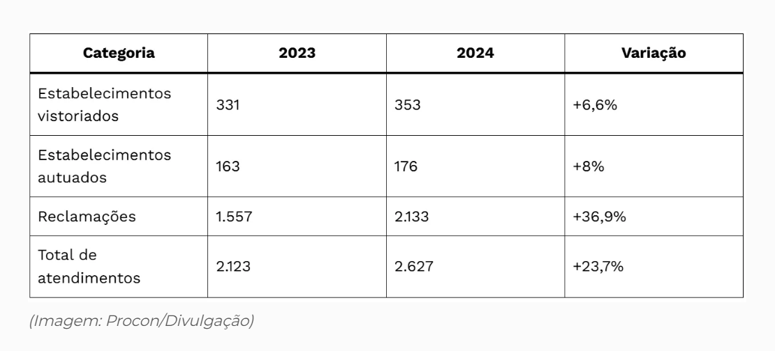A Operação Black Friday 2024 do Procon-SP registrou um aumento de 36,9% nas reclamações de consumidores em comparação ao ano passado. Entre 25 e 29 de novembro, o órgão recebeu 2.133 queixas contra 1.557 no mesmo período de 2023. Já o total de atendimentos, que inclui consultas e orientações, subiu 23,7%, alcançando 2.627 registros.