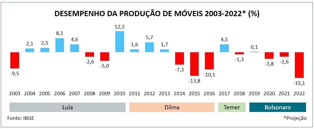 Temos que admitir que vamos fechar 2022 com o maior tombo das últimas duas décadas. Nossa projeção indica recuo de 15,1%, no mínimo, na produção de móveis até dezembro.