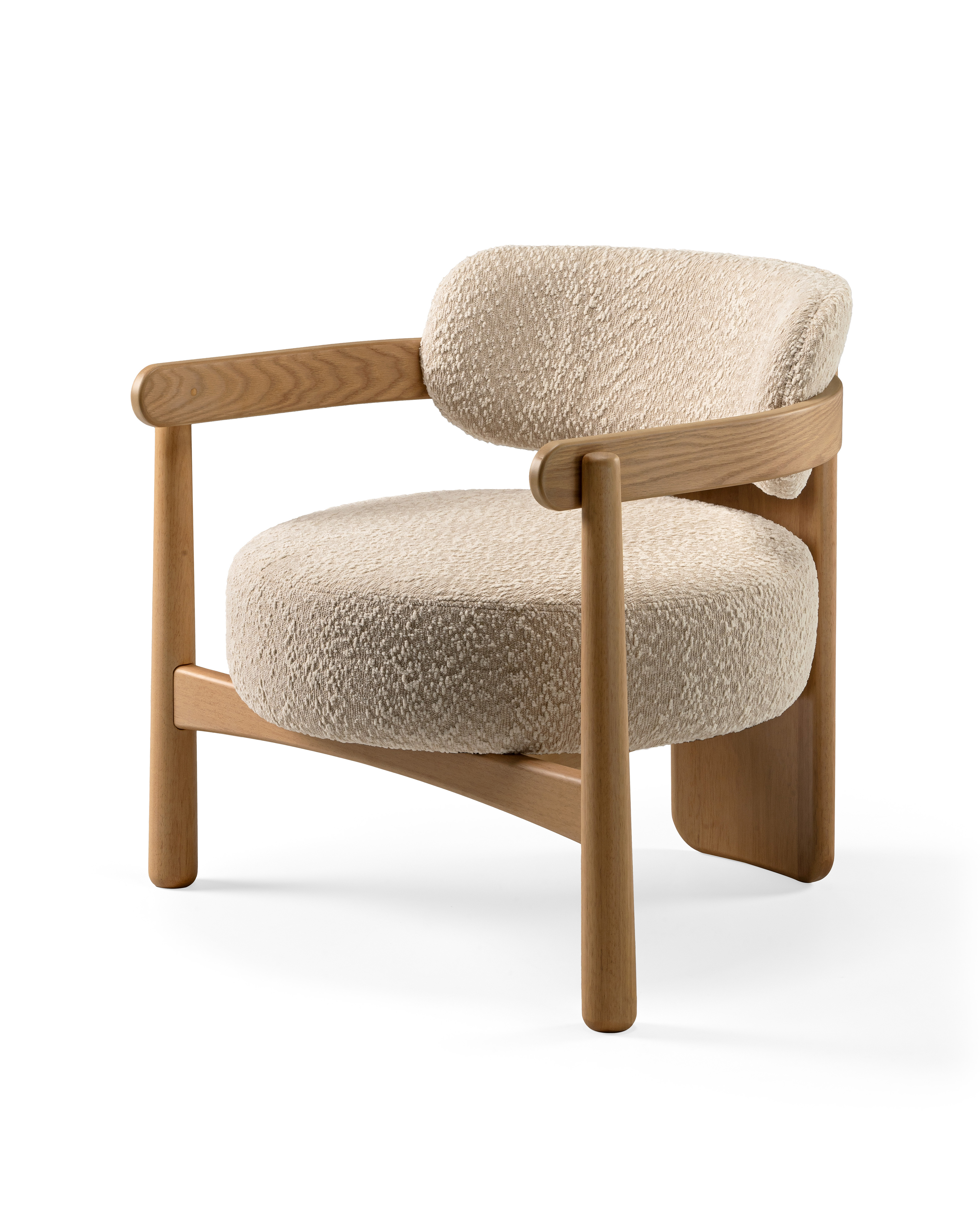 Com uma abordagem criativa guiada por um olhar atento ao comportamento das pessoas e às tendências de consumo, Eduardo Trevisan apresenta na exposição a poltrona Bulbo. A peça explora a robustez natural da madeira maciça Tauari em contraste com a suavidade do design e do revestimento em tecido de matéria-prima orgânica. Com volumes generosos e linhas bem definidas, Bulbo traduz o equilíbrio entre resistência e acolhimento, tornando-se um símbolo de conforto fundamentado. Pensada para espaços que demandam presença marcante e design envolvente, a poltrona reflete a dualidade entre funcionalidade e poesia visual, característica do trabalho de Trevisan, criando móveis que não apenas sustentam, mas também transformam o ambiente.