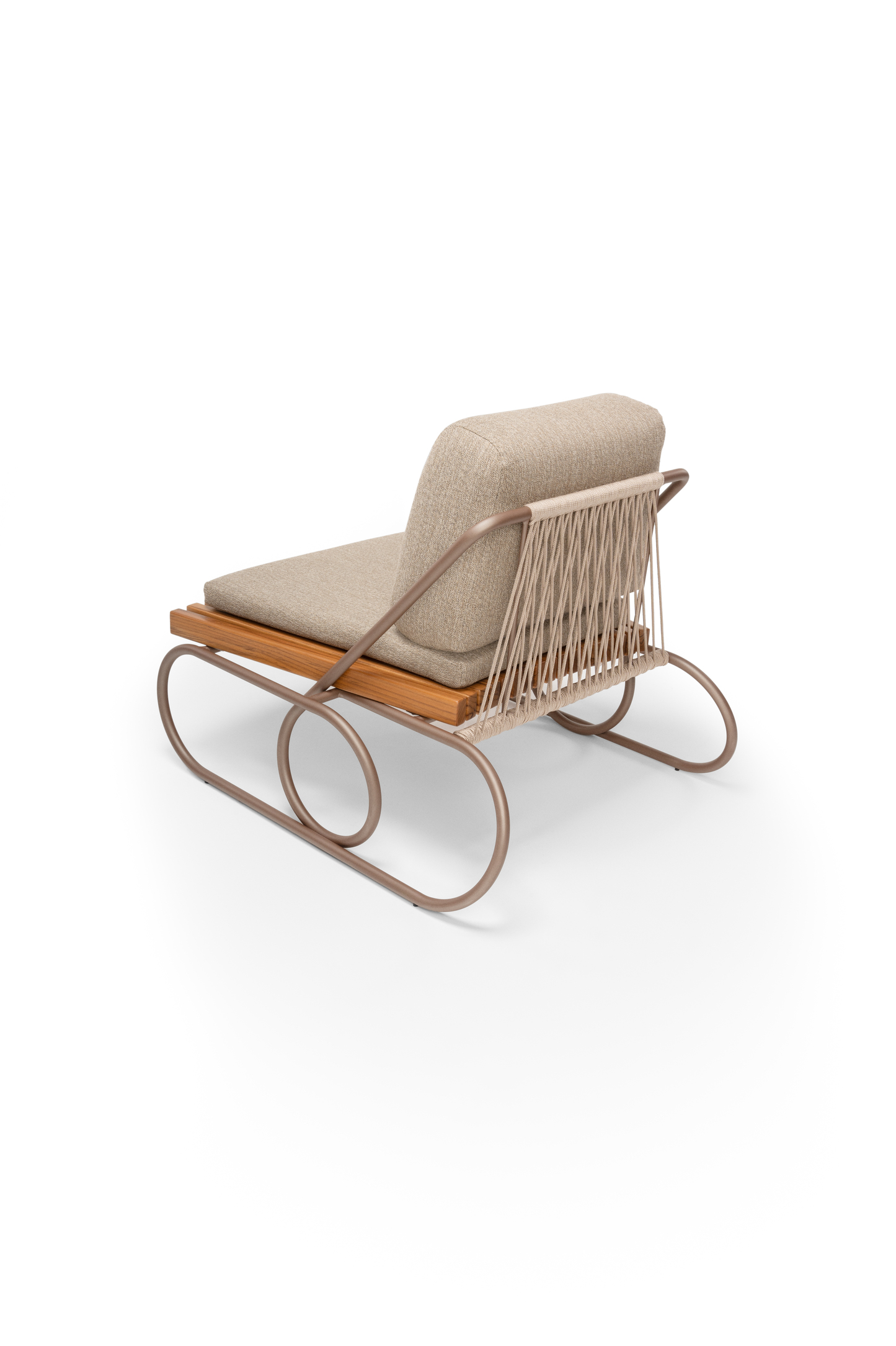 Outras peças da nova coleção assinadas pelo mesmo designer são a poltrona Cipó e a espreguiçadeira que leva o mesmo nome. Inspiradas na vegetação sinuosa da Amazônia, o design meticuloso das peças captura a organicidade e a flexibilidade da natureza. Além de oferecer conforto físico, são um convite para se reconectar com a essência verde do Brasil, transformando o espaço exterior em um oásis de beleza natural e serenidade.