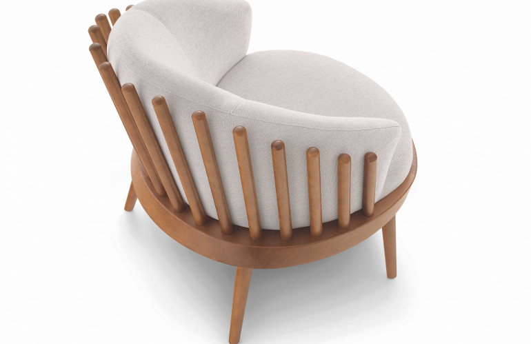 As poltronas são assinadas pelo designer Sérgio Batista, do escritório Know How [Porto Alegre/RS]. “Esses móveis realçam a proposta de um trabalho diferenciado com a madeira misturada a outros materiais naturais, num design autoral e contemporâneo, funcional e com o melhor que a tecnologia tem a agregar, porém sempre com a particularidade envolvente de uma estética que é brasileira e ao mesmo tempo universal”, explica.