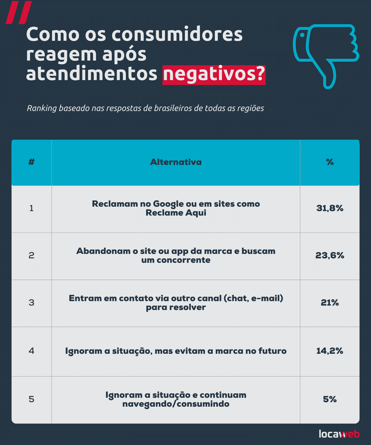 De forma geral, o levantamento mais recente da Locaweb concluiu que, no ambiente online, falhas no atendimento das marcas brasileiras raramente passam despercebidas pelos usuários.