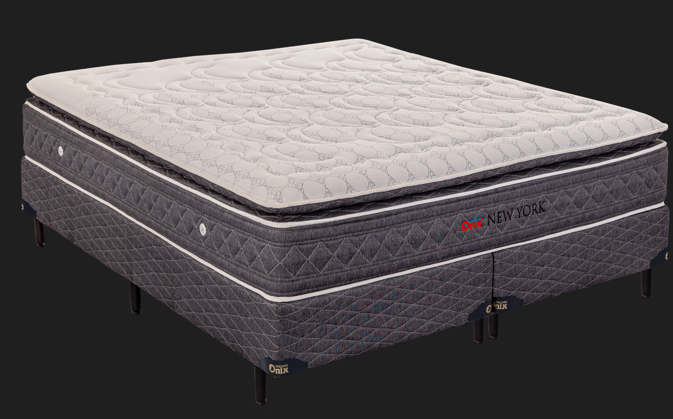 Requinte, Qualidade e Conforto são algumas das principais características do colchão New York, da Onix Colchões. Com estrutura desenvolvida em molejo ensacado individualmente, permite mais conforto na hora de dividir a cama, visto que quando uma pessoa se movimenta de um lado, o outro não percebe o movimento. O New York também possui um estofamento com manta de feltro resinado, com camadas de espuma D-26 e D-28, que oferece um nível de conforto mais firme.