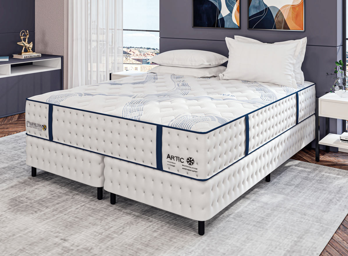 O Artic é premium, um colchão de DNA americano feito com matérias-primas exclusivas, como espumas de alta performance Viscogel, Ecofoam Soft, Certifoam, além do látex 100% natural, e da inigualável Malha Belga, na novíssima linha Luxe Quality. Esse produto é a combinação perfeita entre conforto e bem-estar. Também traz como diferencial a inovadora tecnologia Sense ICE, com fios sua malha belga, que tem a função de deixar o tecido quatro vezes mais gelado do que um tecido convencional. Sua função termorreguladora é ideal para o clima tropical do Brasil, garantindo noites de sono mais refrescantes e agradáveis.