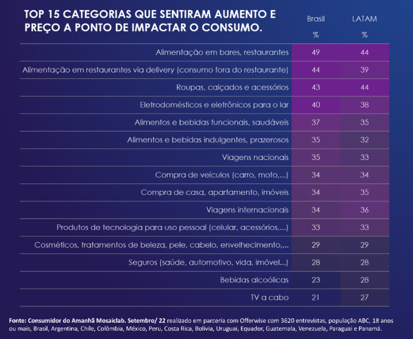 Isso arrefeceu o consumo de algumas categorias, sendo alimentação, roupas, e eletrodoméstico/eletrônicos as mais impactadas no Brasil.