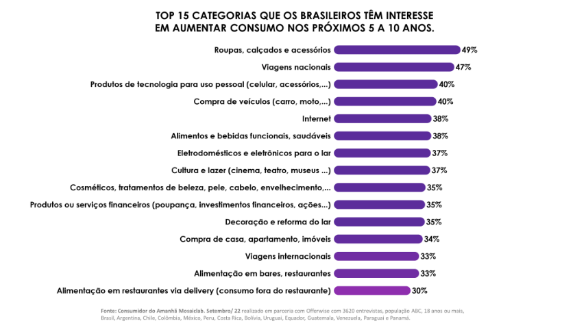Em contrapartida, há um consumo represado na sociedade brasileira, que, aliado a um desejo futuro de consumir e a positividade relacionada a renda e queda de inflação, demonstra um forte potencial para aquecimento de vendas nos próximos anos para vários setores.
