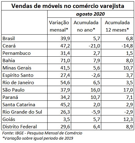 Veja abaixo o quadro completo das vendas do comércio de móveis em agosto:
